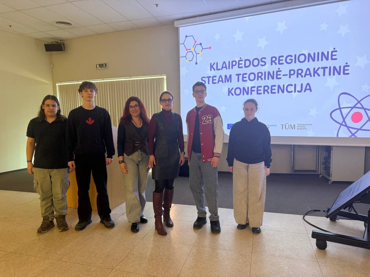 2026 m. kovo 18 d. Klaipėdos universitete vyko „Klaipėdos regioninė STEAM teorinė–praktinė konferencija“, kurioje dalyvavo du mūsų mokyklos mokytojai (geografijos mokytoja Olga Drozdova ir anglų kalbos mokytoja Nadiia Debretseni) bei penki 8 klasės mokiniai: Gleb Šakun 8а, Vladyslav Faiden 8а, Valerii Feshchenko 8b, Elina Pliadaitė 8b ir Agata Veličkaitė 8c.