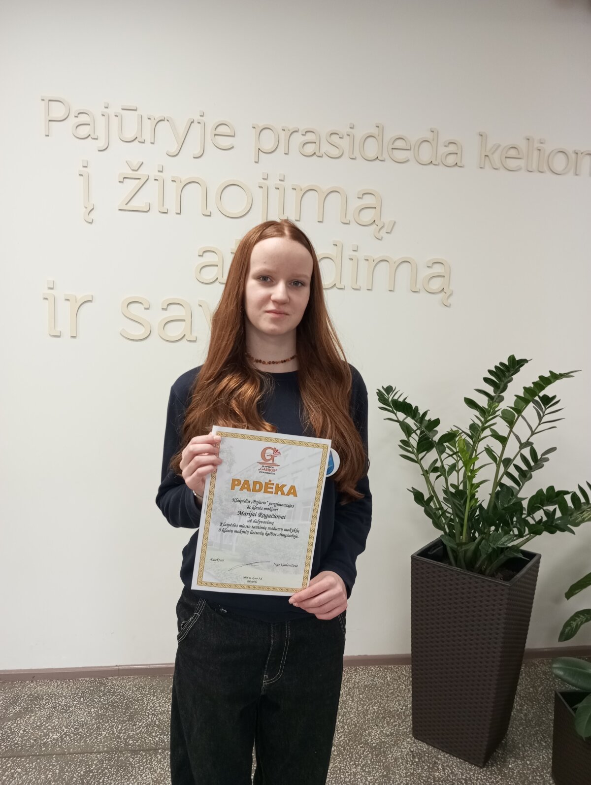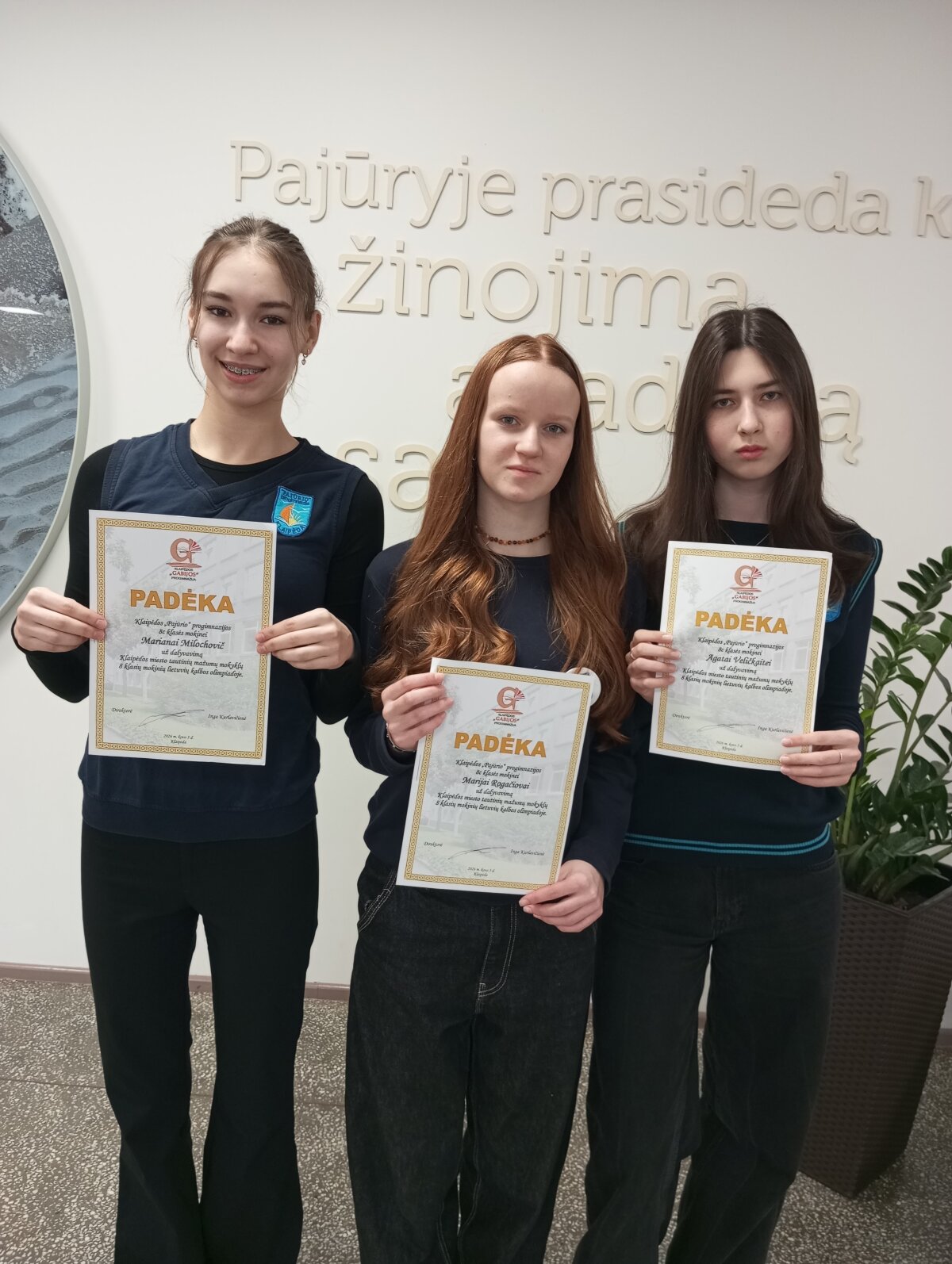 Nuoširdžiai sveikiname 8 c klasės mokinę Mariją Rogačiovą, tautinių mažumų mokyklų lietuvių kalbos ir literatūros olimpiadoje