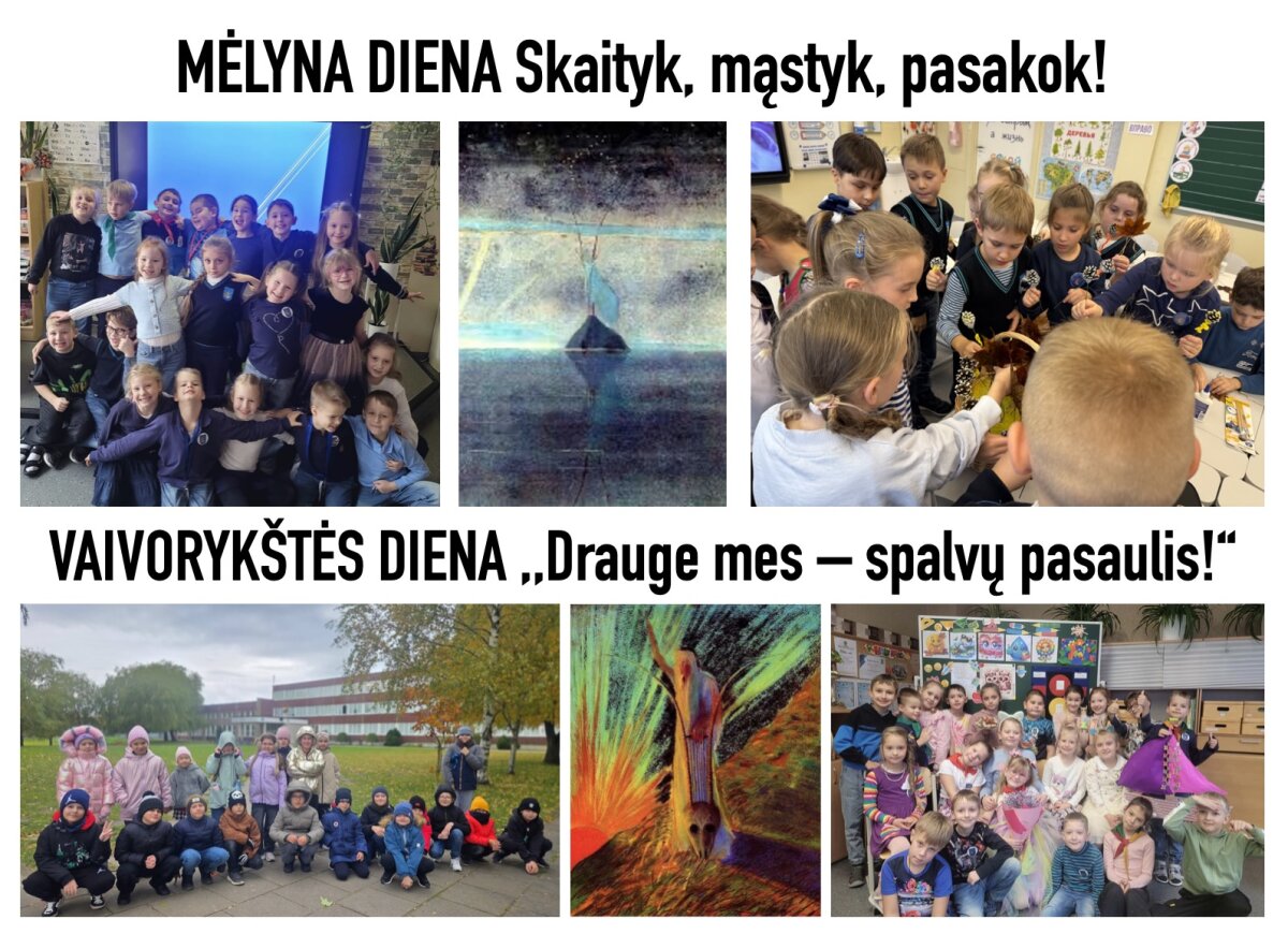 2025 m. spalio 20–24 d. mūsų progimnazijos pradinių klasių mokiniai dalyvavo spalvingame projekte „Spalvų savaitė 2025“, skirtame M. K. Čiurlionio metams. Projekto tema – „Per spalvas – į muziką, šviesą ir gėrį“. Kiekviena diena turėjo savo spalvą, nuotaiką ir veiklas: geltona diena simbolizavo kūrybą ir saulės šviesą, žalia diena – gamtą ir ramybę, raudona diena – energiją ir mąstymą, mėlyna diena – išmintį ir dvasią, o vaivorykštės diena – draugystę ir kūrybos džiaugsmą. Mokiniai klausėsi Čiurlionio muzikos, kūrė piešinius pagal jo paveikslų motyvus, skaitė, žaidė, improvizavo ir mokėsi išreikšti emocijas spalvomis, garsais bei žodžiais. Savaitė buvo kupina šviesos, kūrybos ir šypsenų, o klasėse tvyrojo draugiška, įkvepianti atmosfera. Dėkojame visiems mokiniams, mokytojams ir tėvams už aktyvų dalyvavimą, idėjas bei gerą nuotaiką.
