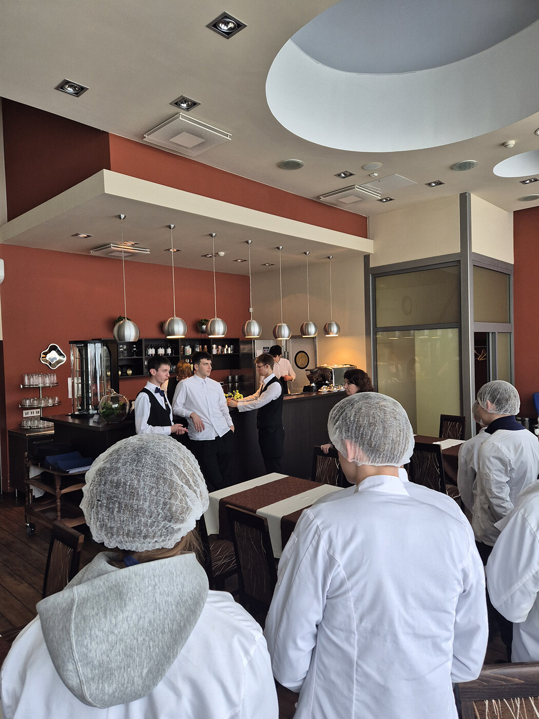 Mokiniai buvo supažindinti su įvairių mokomųjų dalykų laboratorijomis ir jose apsilankė, mums buvo surengta ekskursija po profesinės mokyklos praktinio mokymo dirbtuves, taip pat apsilankėme restorane ir arbatinėje. Sužinojome daug naudingos informacijos apie tai, kaip mokosi ir kaip ilsisi šios mokyklos mokiniai, taip pat kokiuose tarptautiniuose projektuose jie dalyvauja.